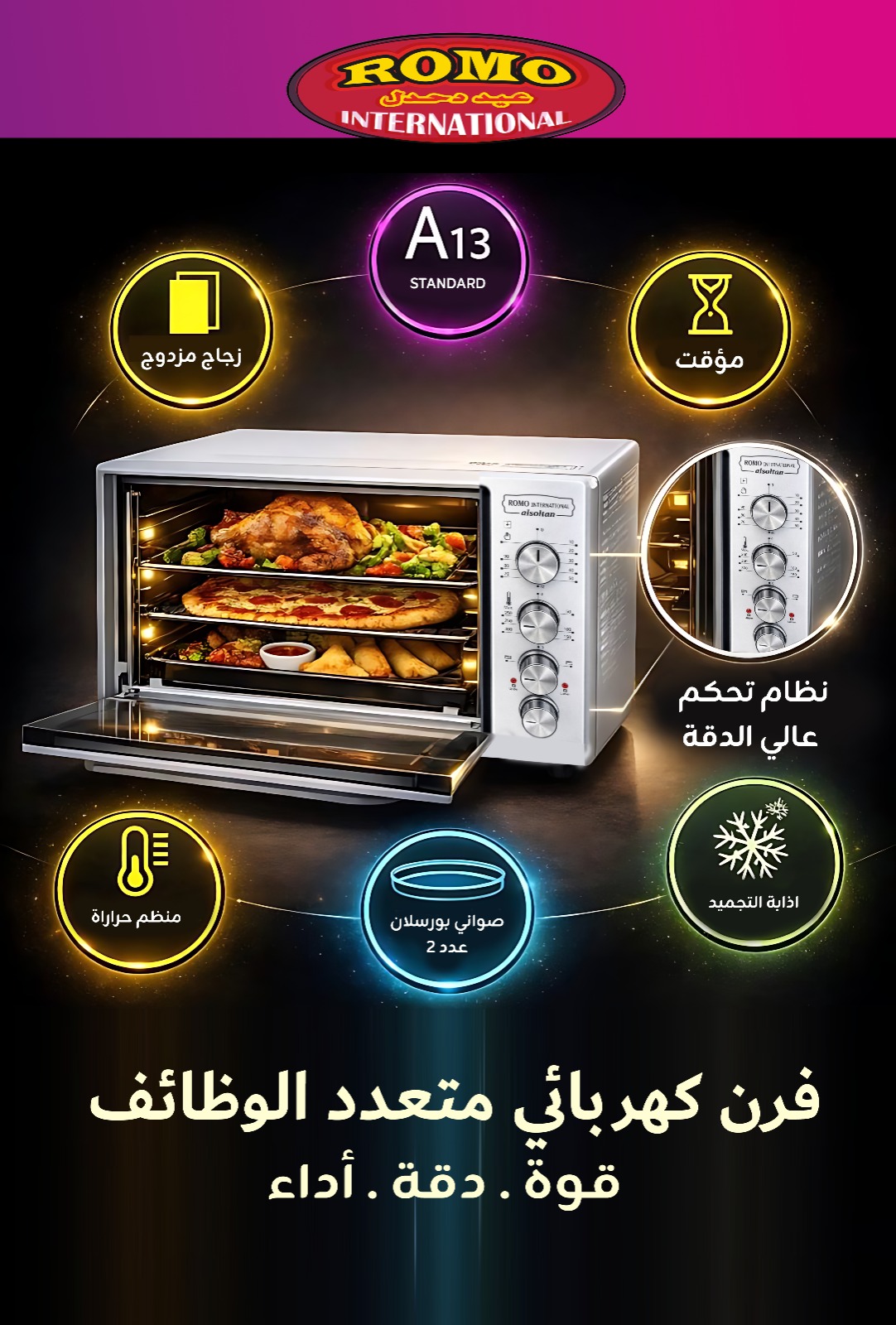مروحة داخلية لتوزيع الحرارة بشكل متساوٍ.